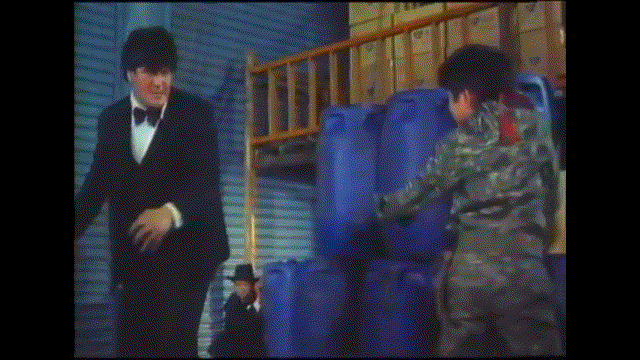 Le nanar fonctionnant souvent par couches successives, la VF ajoute une bonne part de ce subtil mélange d’exaspération et d’hilarité au métrage. En effet, le film peut s’apprécier au premier degré pour peu que vous soyez familier de l’humour cantonnais, que vous ayez moins de 8 ans et que vous fassiez abstraction des saillies racistes, des sous-entendus graveleux et des mains aux fesses aux personnages féminins. C’était une autre époque, me susurre t-on à l’oreille. D’ailleurs il semble que certains l’ayant vu au bon âge en gardent un souvenir nostalgique. Je les préviens, le revoir à l’âge adulte risque de rincer un peu leur enthousiasme.