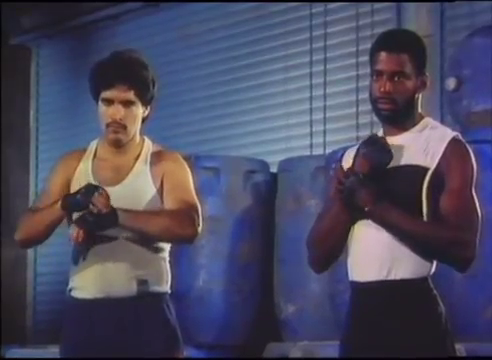 A droite, Eugene Thomas, vu entre autres dans Mafia Vs Ninja, Ninja Condor 13, Ninja in the USA, Ninja the Final Duel, Shaolin Dolemite ou encore Super Ninja.