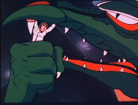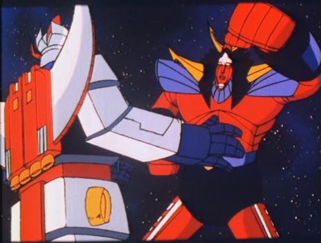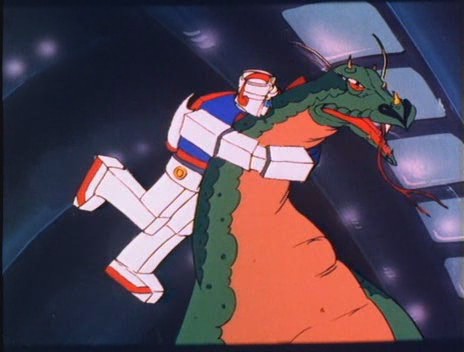 Vous avez bien lu. L’arme ultime des gentils est un mécha grossièrement copié sur les séries animées « Mazinger Z » et « Great Mazinger », avec un peu de « Voltron » et pas mal de Transformers pour faire bonne diversion . Mais ce n’est que le début du plagiat en série : le sidekick/inventeur se présente en effet lors de sa première apparition affublé d’un superbe chapeau copié sur celui de Toshiro (Alfred) dans « Albator 84 ».