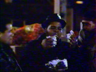 Passons en vitesse le nanar disco (Staying Alive), le nanar grunge (Singles), le nanar dance (Bouge !), le nanar glam-rock (le cultissime Rocky Horror Picture Show, Black Roses ou Kiss contre les Fantômes), et attardons nous sur une rareté : le nanar rap. Car oui, House Rap est une comédie musicale rap. Et pas n'importe quel rap : le film datant du milieu des années 80, c'est logiquement une musique gentiment dépassée, servant de play-back à un phrasé d'un autre âge, qui nous est offerte.
