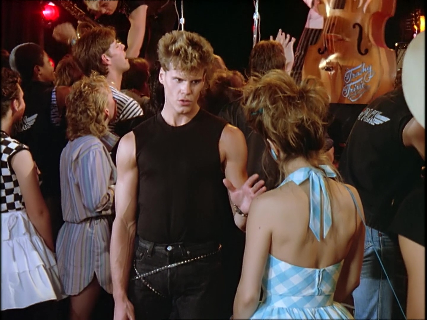 Après une autre chansonnette, nos ET atypiques (ils mangent les pailles qu'on leur offre au fast-food, d'où gag) font la connaissance d'une bande de jeunes qui passe semble-t-il son temps à improviser des chorégraphies sur la plage entre deux matches de beach-volley. La rivalité entre le chef de bande, le fougueux Frankie, et le meneur des aliens, l'impétueux ABCD, pour conquérir le cœur de la belle héroïne (Pia Zadora, justement) déclenchera toute une série d'évènements incroyables, invariablement entrecoupés d'intermèdes musicaux avec des chorégraphies à l'avenant.