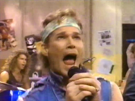 A partir de là, le film va enquiller les descentes de manche vertigineuses et les plans shredding les plus imbuvables en toute impunité. Pour le plus grand bonheur des amateurs de guitare, son tout nouveau talent est l'excuse rêvée pour étaler des gros plans sur les mains de notre héros, ce qui donnent à l'ensemble une étrange allure de vidéo pédagogique pour apprenti musicien. Au passage, inutile de préciser que lesdits gros plans ont l'avantage de ne pas révéler trop expressément que c'est une doublure (le même Batio) qui joue. Quant aux faux raccords du type guitare débranchée-branchée, ils sont évidemment légion.