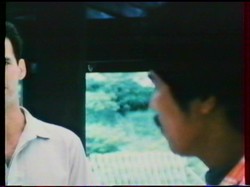 Autant le dire tout de suite, la partie ninja est plutôt faible, voire décevante. Pourtant ça démarre fort : Richard, arborant une moustache grise qui tranche singulièrement avec son impeccable coiffure blonde, se ballade avec sa fiancée (jouée par son épouse dans la vraie vie, Francesca Harrison) sur le port de Hong Kong en prenant des photos. Surviennent trois gros bras qui commencent à embêter madame. Evidemment, après avoir tenté de temporiser, l’ami Harrison, qui se montre toujours en pleine forme, va les baffer d’importance. La suite n’est hélas pas à la hauteur de ce début flamboyant.