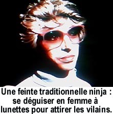 Ce ninja est d'ailleurs assez peu orthodoxe, qui, à la combinaison noire avec cagoule, préfère le travestissement en femme à lunettes qui lui sert à attirer des sbires.