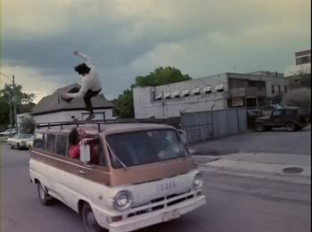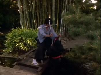 Et c'est là en fait la deuxième qualité de ce film : il ne s'appelle pas "Revenge of the Ninja" pour rien. En effet, les vilains ne vont pas arrêter de gonfler Shô et sa famille. Or il est bien connu qu'à force de pousser à bout le héros, c'est toujours très mauvais pour le reste du casting. En fait, le film pourrait être découpé en plusieurs mini-sketches où notre immigré japonais botte des derrières en série. Sa femme, ses statuettes, sa mère, son pote, son fils, tout va y passer pour le plus grand plaisir des yeux. Ils auraient aussi pu continuer en brûlant sa voiture, malmenant son poisson rouge, fouillant dans son frigo, entrant chez lui avec leurs chaussures pleines de boue, que sais-je encore.