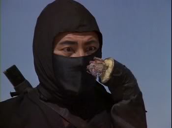 Shô et l'insaisissable ninja au masque de supérette s'affrontent.