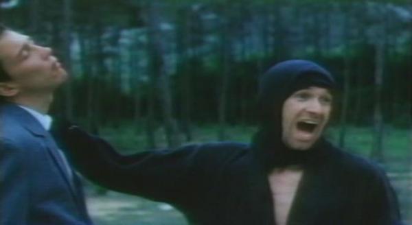 Armes ridicules, pouvoirs ninjas improbables, effets spéciaux de feu et techniques de combat délirantes se combinent dans une débauche de crétinerie jouissive. A chaque fois qu’on croit en voir le bout, le film nous prend à contre-pied et nous balance dans les mirettes une nouvelle trouvaille aussi ridicule qu’inattendue. A ce stade, on ne peut que vous recommander d’interrompre la lecture pour aller regarder la scène sur Youtube car le choc de la surprise seul permet de l’apprécier à sa juste valeur, et nous allons la spoiler en détail ci-dessous.