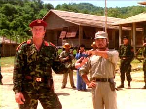 Mais le véritable atout nanar du film n’apparaît qu’à la moitié du métrage. Voici en effet que survient l’affreux soviétique Youri, entraîneur du camp militaire secret où est détenue, en pleine jungle, la fiancée de Scott. Succédant à Jean-Claude Van Damme dans le rôle du méchant soviet, le body-builder allemand Matthias Hues est tout simplement PHENOMENAL ! Ce colosse épais comme trois armoires, sorte de Godzilla teuton, compose un personnage de brute sadique si caricatural qu’il transforme une bonne partie de ses scènes en véritables parodies !