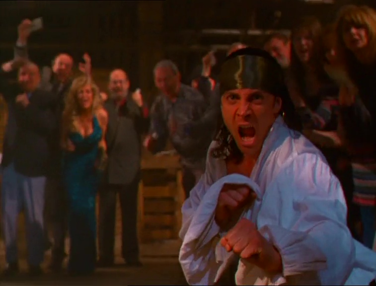 Un mot sur le jeu d'acteur qui est un autre solide dopant du nanaromètre du film. Vous avez d'un côté Daniel Bernhardt qui sous-joue la catatonie et de l'autre tout le reste du casting qui cherche à compenser dans un concours de qui en fait le plus des caisses. Une compétition que chacun prend très au sérieux et qui, très étonnamment, est remportée par James Hong. Habituellement plutôt sobre, le bonhomme semble prendre conscience qu'on n'a qu'une vie et qu'une seule carrière, et part en roue libre arrière en équilibre sur le nez : plus l'histoire progresse et plus il cabotine, dansant avec des éventails au milieu des combats, ricanant dans des aigus très pentus et ponctuant le dernier acte de ses "Avenge meeeee !" enfiévrés.