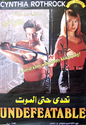 Boumbadaboum, quelques temps plus tard, là où d’autres en seraient encore aux repérages, Godfrey boucle sa contribution annuelle au côté obscur du cinéma avec Undefeatable, qu’il réalise et co-produit là encore sous le pseudo de Godfrey Hall – une volonté manifeste de favoriser son intégration – à nouveau pour les deux compagnies aux noms aussi prétentieux que vains (Filmswell International et Action Star Pictures, haha) et avec grosso modo les mêmes acteurs, aussi bien principaux (Cynthia Rothrock, John Miller, Donna Jason) que secondaires (Richard Yuen, Gerald Klein, Hang Yip Yim, Sung W. Lim etc.). Il faut voir là une preuve de l’abnégation exemplaire de Godfrey Ho qui, en reconduisant quasi intégralement l’équipe de Honor and Glory, fait l’aveu implicite mais évident que cet échec était son échec, comme un coach qui assume l’entière responsabilité pour la défaite de ses joueurs. En homme intègre, fidèle à l’image qu’il a laissé de lui à Hong Kong, Godfrey admet pudiquement ses erreurs mais ne s’avoue pas vaincu. Il sait qu’il joue gros, que ses fans l’attendent au tournant et ne toléreront pas un nouveau navet, mais Godfrey se montre confiant, tournant son regard vers l’horizon et appréhendant l’avenir avec sérénité, car il a un joker de taille. Ce joker, c’est Don Niam.