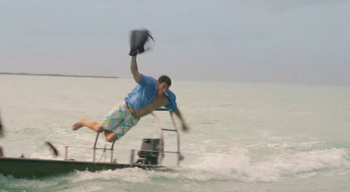 - Cole qui préfère sauter d'un hors-bord poursuivi par le monstre pour tenter sa chance à la nage (lol).