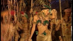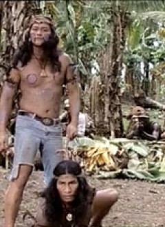Ces derniers attirent d'ailleurs l'attention du nanardeur, tant leur traitement est d'une crétinerie confondante. En 2003, Mattei continue à nous servir du sauvage natif à la sauce colonialiste amateur de frissons exotiques qui n'aurait pas dépareillée il y a un siècle. Le Mondo n'est pas mort, Mattei est son messie. Ces peuples sont ainsi entièrement constitués de décérébrés hurlant en permanence, sans même de langage véritable, et qui, s'ils connaissent au moins le feu, ne peuvent se retenir de manger les viscères crus en se les arrachant mutuellement de la bouche et en s'en foutant partout. Même quand ils mangent des couilles de singe faisandées (un plat typique, je n'en doute pas), ils se barbouillent la gueule avec en rigolant comme de gros niais.