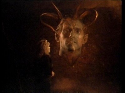 Mais trop de surimpression tue la surimpression. Le réalisateur l'a bien compris. Il ne faut pas oublier non plus le déguisement fort crédible de Satan... Admirons maintenant les merveilleuses aventures de Satan !