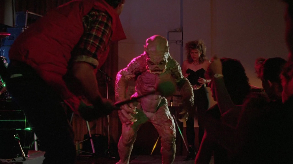 Et c'est pas un groupe de rock venu faire le numéro de la Bête devant une salle remplie de chevelus portant des bracelets cloutés qui va faire peur à Monsieur Moorhouse ! Non Mâdame, Monsieur Moorhouse, notre héros, exerce le noble métier de professeur de littérature et il écoute Mozart pour se détendre le soir... Alors pas étonnant qu'il arrive à venir à bout de 4 démons-ménestrels en leur lattant les couilles (qu'ils n'ont pas) ou en les frappant avec leur pédale de batterie comme à la fin du film.
