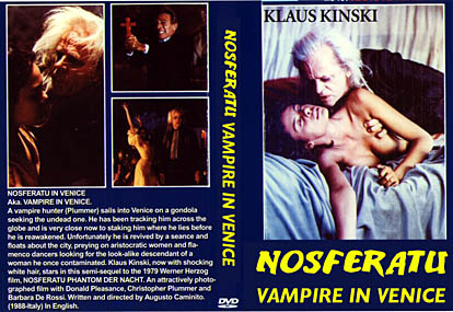 Autant avertir tout de suite le lecteur, le film qui fait l’objet de cette chronique n’est pas à proprement parler un nanar hilarant. Il s’agit cependant d’une bizarrerie suffisamment intéressante pour mériter d’être mentionnée en ces lieux. « Nosferatu à Venise » est en effet l’une des pires catastrophes de toute l’histoire du cinéma fantastique italien, un film maudit par un tournage désastreux, des caprices hallucinants de l’acteur principal, une succession de réalisateurs dans une atmosphère de chaos total, pour aboutir à un résultat final qui mélange d’excellentes idées à des moments de pure nanardise, une mise en scène inspirée à un récit sans queue ni tête saupoudré d’une bonne dose de kitsch. C’est en outre l’un des ultimes soubresauts de Klaus Kinski, pétant son dernier plomb avant de couler sa dernière bielle en passant derrière la caméra pour « Paganini », puis d’expirer trois ans plus tard, sa batterie étant définitivement à plat.