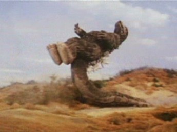 - Et maintenant voilà que Godzilla agrippe Megalon par la queue et l’envoie valdinguer au sol comme un vulgaire sac de patates.