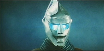 - Regardez-moi ce pauvre idiot de Jet Jaguar qui cherche Megalon à quatre pattes avec ses yeux phares anti-brouillards !
