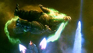 Impuissant, Godzilla est bien obligé de réfléchir et il comprend enfin que Space Godzilla tire son énergie de la tour et qu'il n'y a plus qu'à la péter, cette putain d'tour.