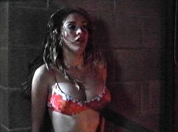 La censeur (enfin la proviseuse du collège, quoi !) descend en nuisette à la laverie pour faire un peu de lessive à trois heures du matin. Elle pose sa bassine de linge sale sur une machine à laver et en sort un flacon de whisky (Il est toujours bon que les victimes soient alcooliques ou fumeurs comme ça on ne les regrette pas trop). Pendant une bonne minute, elle se murge au whisky en bougeant ses cheveux d'une façon lascive parce qu'elle le vaut bien. Mais l'oeil de la webcam l'observe (oui, il y a des webcams dans les laveries ! je vous rappelle qu'on est dans un nanar...). Et soudain, le MANGLER attaque. Il met en route une machine à repasser qui aspire les cheveux de la pauvre femme, le sang gicle sur les appareils électroménagers, la victime vient d'être broyée par le fer à repasser fatal. 'You've been Mangled !'