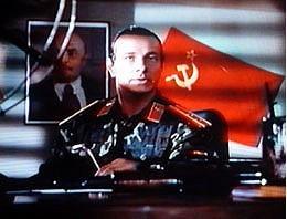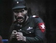 - Le communiste arabe : plus rare, mais présent dans quelques productions reaganiennes bourrines des années 80. Ansi dans Top Gun Sacrifice (1989), le royaume pétrolier d'un dictateur souverain juste et éclairé est menacé par de très vilains révolutionnaires communistes, qui font rien qu'à ricaner en brandissant un drapeau rouge le couteau entre les dents. Les accointances entre terroristes arabes et révolutionnaires communistes, unis par une haine idéologique commune des Etats-Unis, font du communiste arabe une sorte de méchant ultime. Ces accointances prennent parfois comme toile de fonds scénaristique les conflits au Proche-Orient (Liban, Palestine), comme dans le radical Riposte Immédiate (1986).