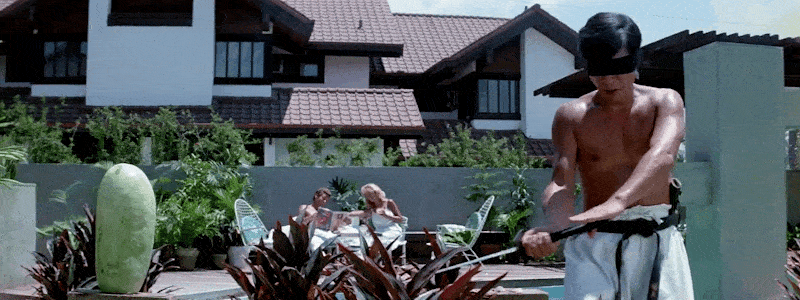 Dans Ninja in the USA (1985), Alexander Lou se montre impitoyable envers ses ennemis… et les pastèques.