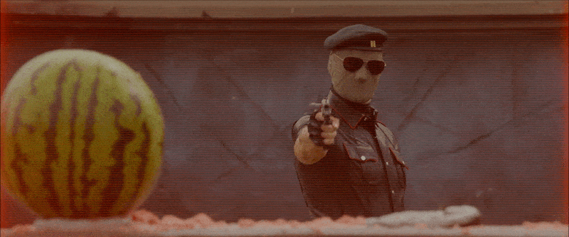 La pastèque, fruit occulte fétiche des forces obscures dans American Commando 5 - Fury in Red (1988).