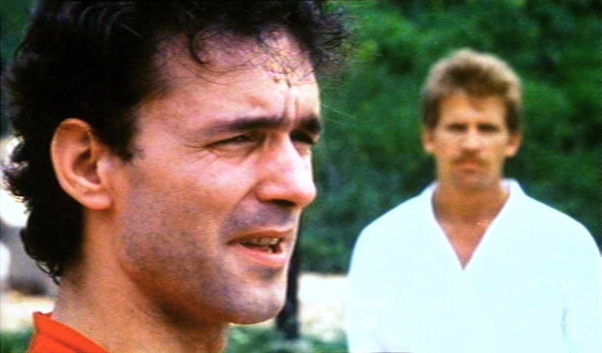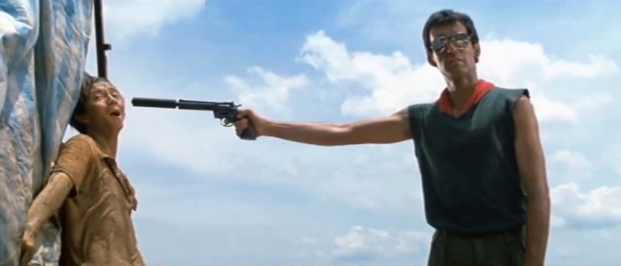 Pierre Tremblay, grimaçant à souhait dans "L'enfer des armes" (1980) de Tsui Hark.