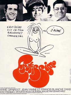 Toujours en folie, c’est cette fois-ci l’hallucinant « Le Plumard en Folie » (alias « Les Farfelous »), film à sketchs franco-québécois où il apparaît en monsieur loyal, faisant la liaison entre des scénettes érotico-comiques où se commettent Jean Lefebvre, Alice Sapritch, Paul Préboist, Michel Galabru ou Henri Tisot. Il ne faudrait pas oublier « Drôles de Zèbres », tourné par un Guy Lux sous acide, où il est le chauffeur-âme damnée de Sim déguisé en baronne (avec l’apparition de son ami Claude François). On pourrait encore citer le méconnu mais prometteur « Par ici la monnaie » alias « Les Démerdards » de Richard Balducci, où il interprète Wolfgang Amadeus Bozart, escroc minable spécialisé dans l’enlèvement des chienchiens à leur mémére, aux côtés de complices incarnés par Henri Guybet et Michel Galabru.